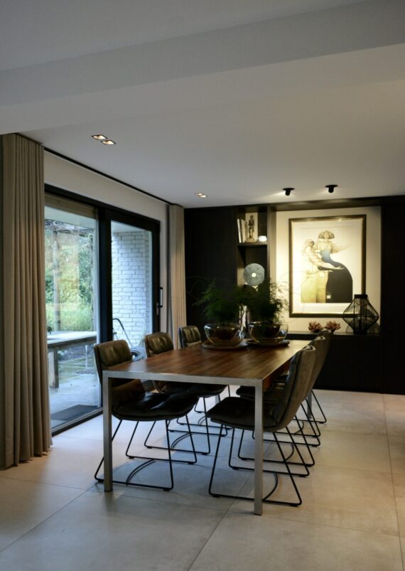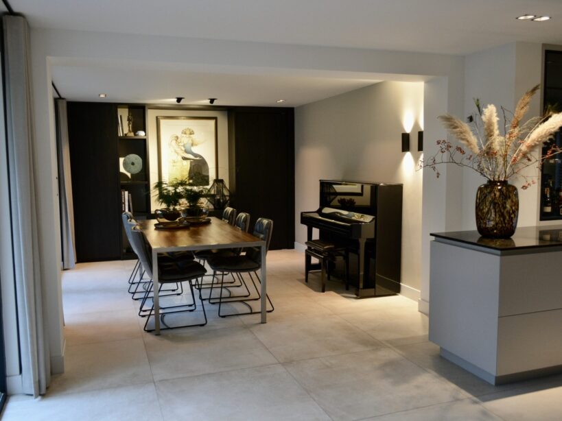 Een complete verbouwing om het huis eigentijds te maken en toegankelijk voor de hele familie. De stijl die de opdrachtgever graag terug wilde zien was modern en strak met warme kleuren en luxe materialen. De architectuur van het huis is volledig op de tuin gericht en ook het interieur moest hieraan gewijd worden. Voor de opdrachtgever is een interieurplan inclusief indeling, meubels, verlichtingsplan en kleurenplan gemaakt. De huidige indeling mocht worden aangepast zodat het nieuwe plan uitgewerkt kon worden.
